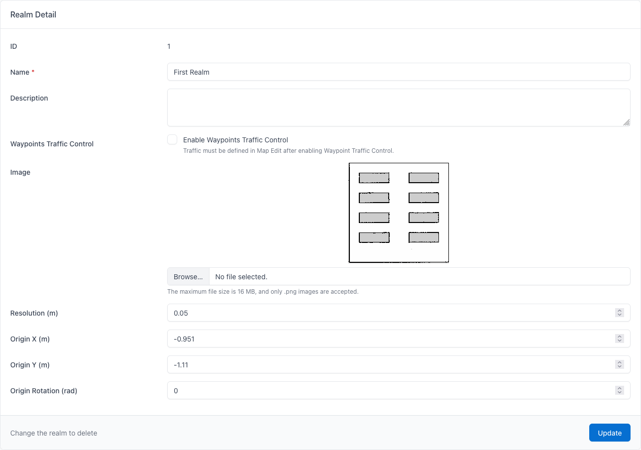 On the details page for First Realm, click the Browse… button to upload the map image. Then update the other fields according to the table below.